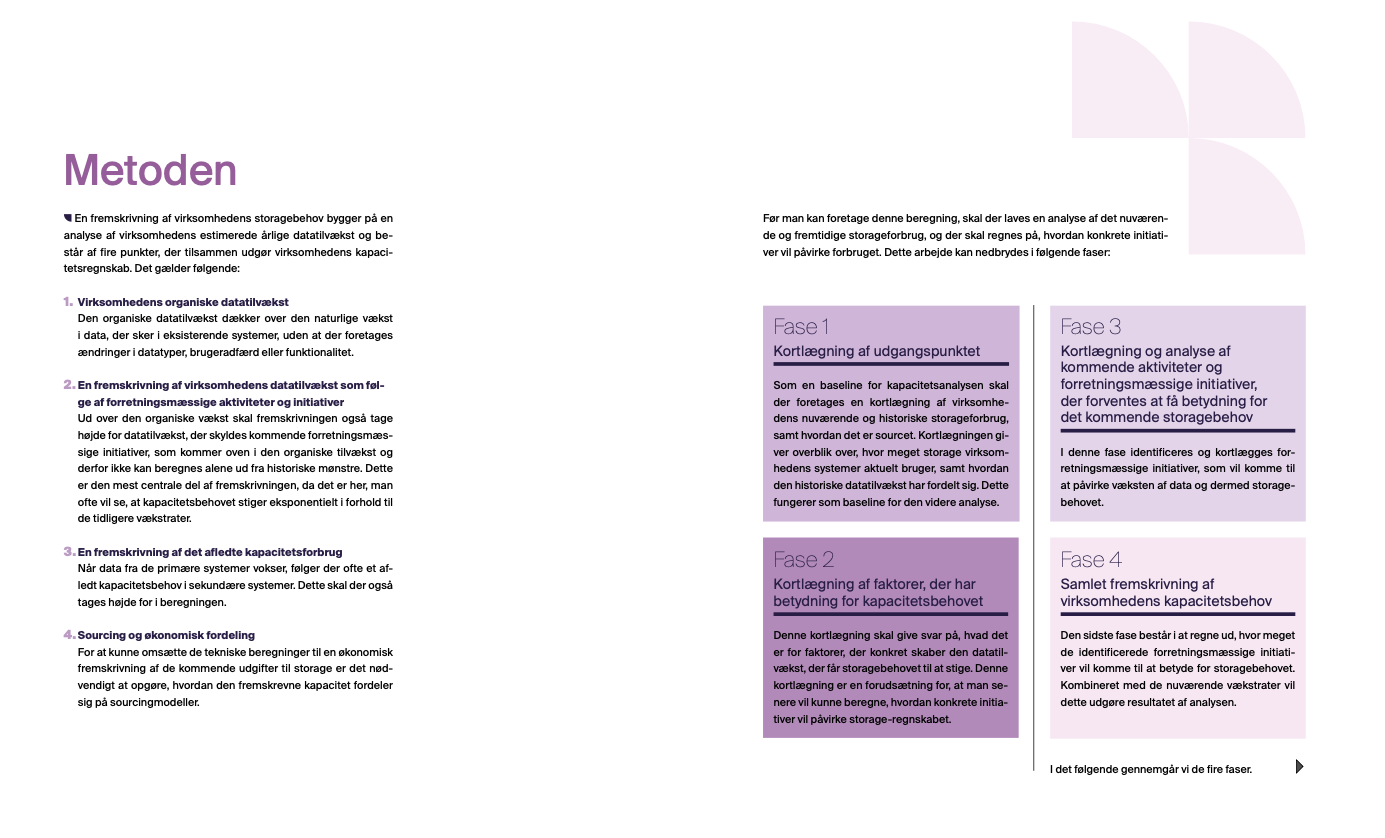 I denne artikel præsenterer vi en metode til at analysere og fremskrive organisationens samlede storagekapacitetsbehov 3–5 år frem, fordelt på systemer, datatyper og sourcingmodeller. Metoden kan anvendes som fundament for it-budgettering, fremtidige infrastrukturinvesteringer samt storagestrategiske beslutninger.
