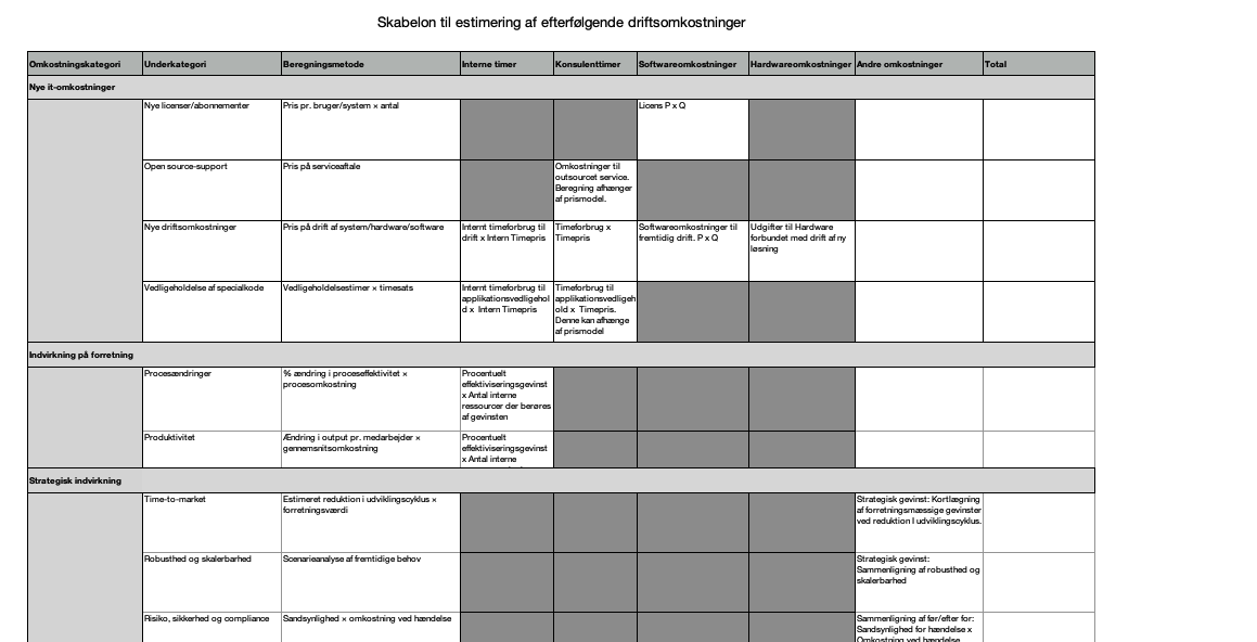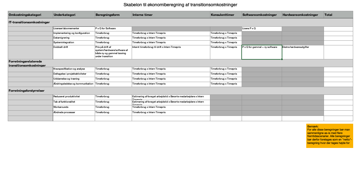 Værktøj: Skabelon til økonomiberegning af software-plan B